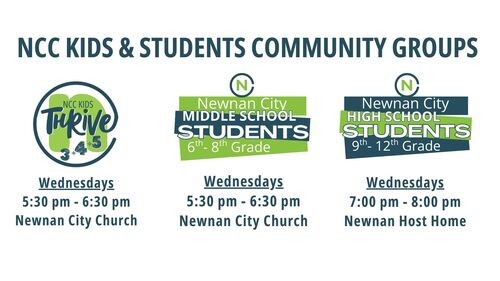 Due to a lack of space, our Elementary, Middle, and High School students join their families during service. They are invited to attend our age-specific